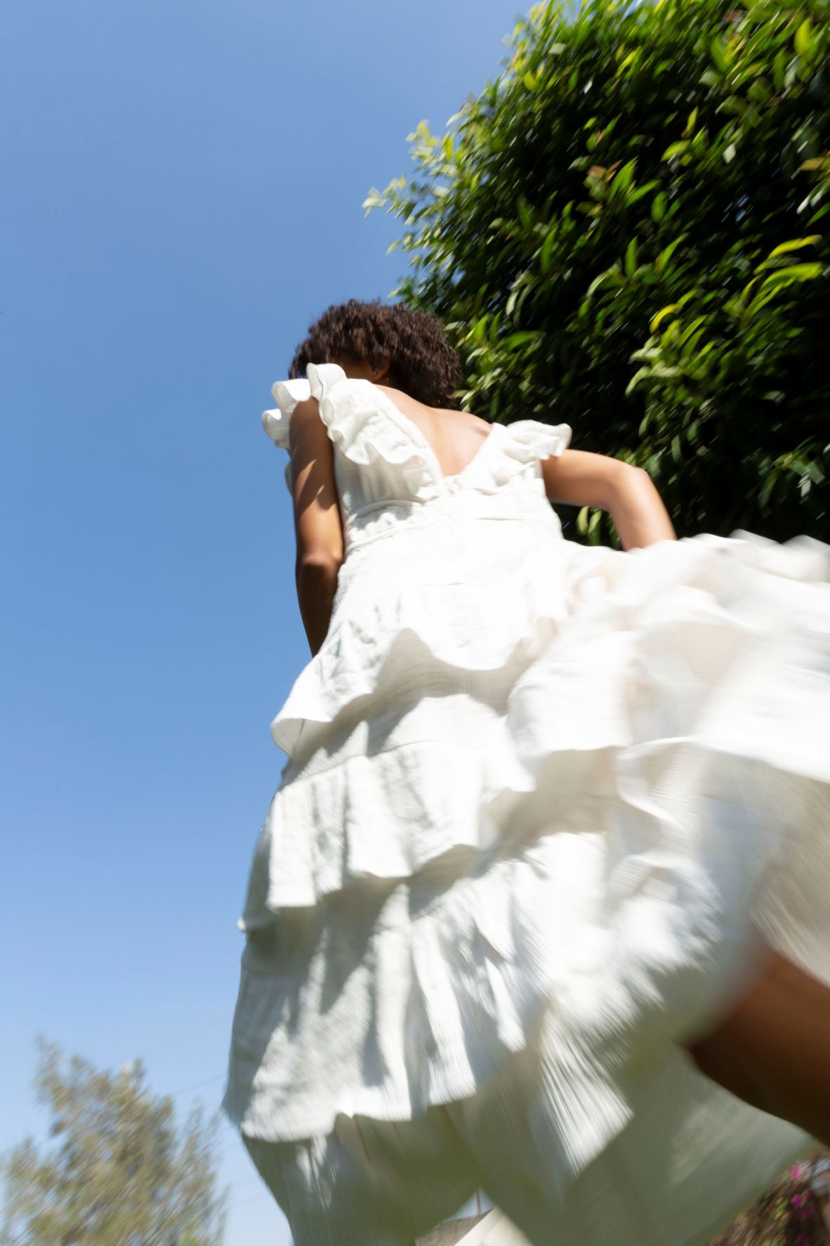 Cotton Muslin Ruffle Maxi Dress - Maya Eco